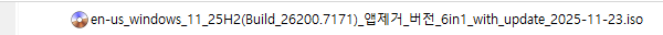 KB5068861 = 최신 누적 업데이트(26200.7171) (Last Cumulative update : LCU) (2025-11-11)