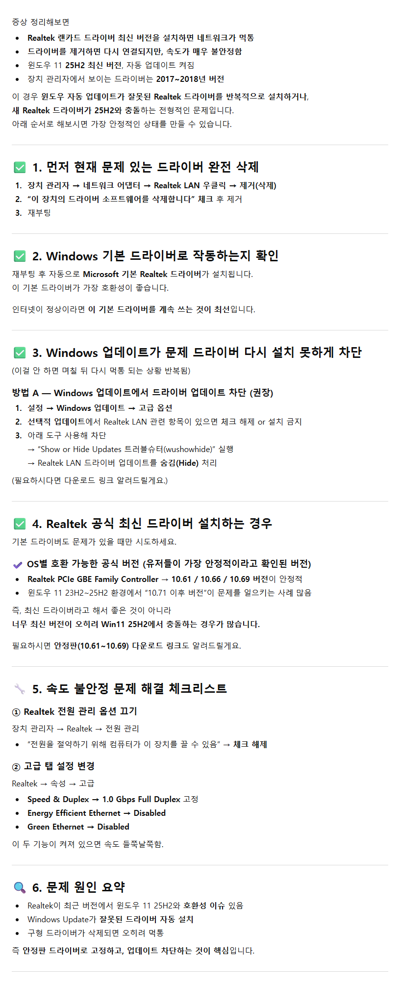 - 2025년 11월 7일 업데이트: Windows 11 PCIe: (NetAdapterCx는 절전 기능을 지원하지 않음) Install_PCIE_Win11_11027_20_DMAROFF_10282025.zip
