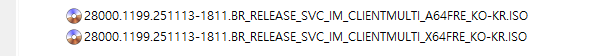 아래 파일은 UUP dump에서 배포하는 스크립트를 이용해서 MS에서 배포하는 파일(ESD, cab파일)로 만든 순수 ISO 파일입니다.