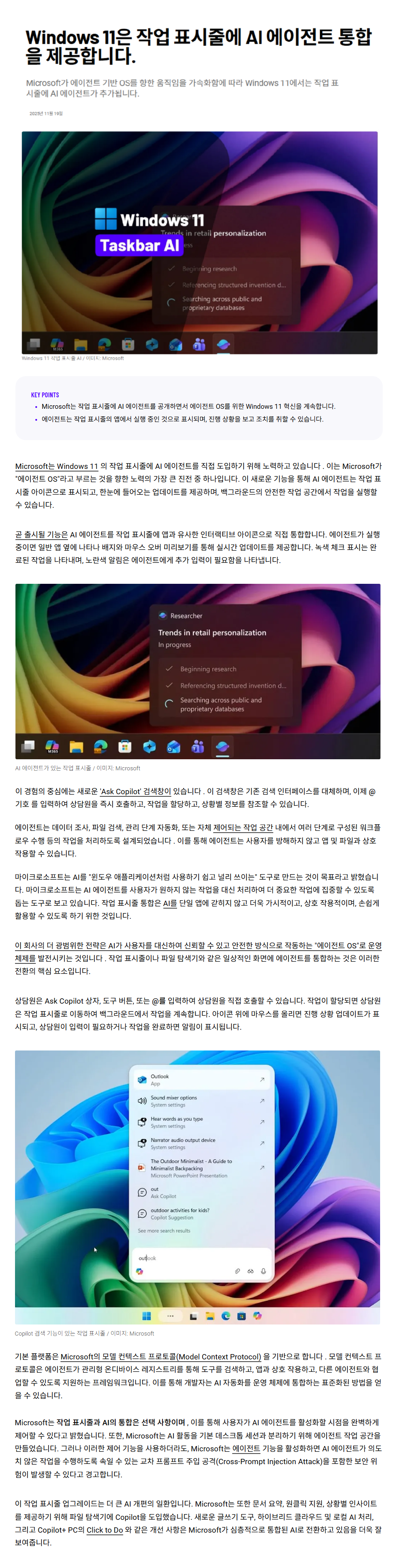 Windows 11은 작업 표시줄에 AI 에이전트 통합을 제공합니다.