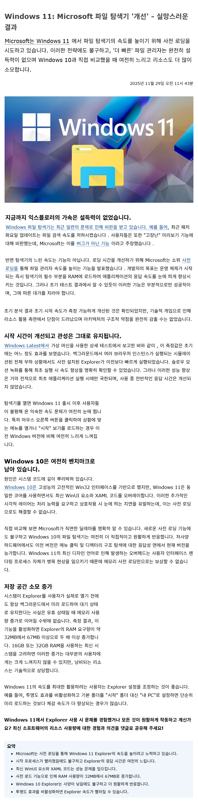 현재 프리뷰 빌드에서 파일 탐색기 성능 개선을 하고 있습니다...