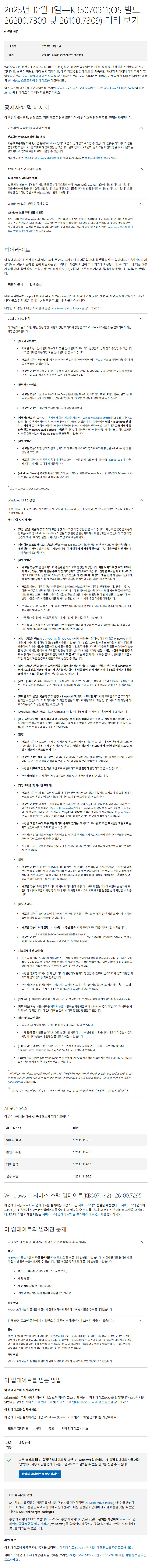 (KB5071142)- 26100.7295 = 서비스 스택 업데이트 (Servicing Stack Update : SSU) (누적업데이트 설치 준비 파일) (2025-12-01)