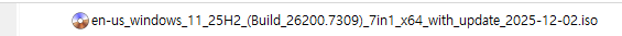 Windows 11, 25H2 MSDN + 누적 업데이트 통합판 (빌드 26200.7309) 6in1 [배포 종료]