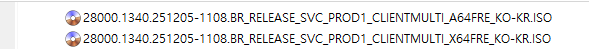 아래 파일은 UUP dump에서 배포하는 스크립트를 이용해서 MS에서 배포하는 파일(ESD, cab파일)로 만든 순수 ISO 파일입니다.
