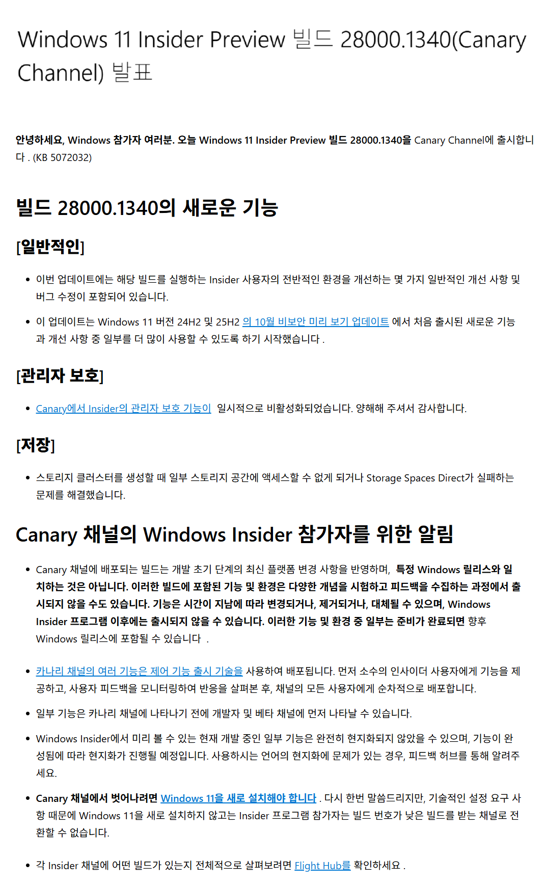 ○ 카나리아 채널 [Canary] = Windows 11 26H1 : 빌드 28000.1340 (= 참가자 빌드)