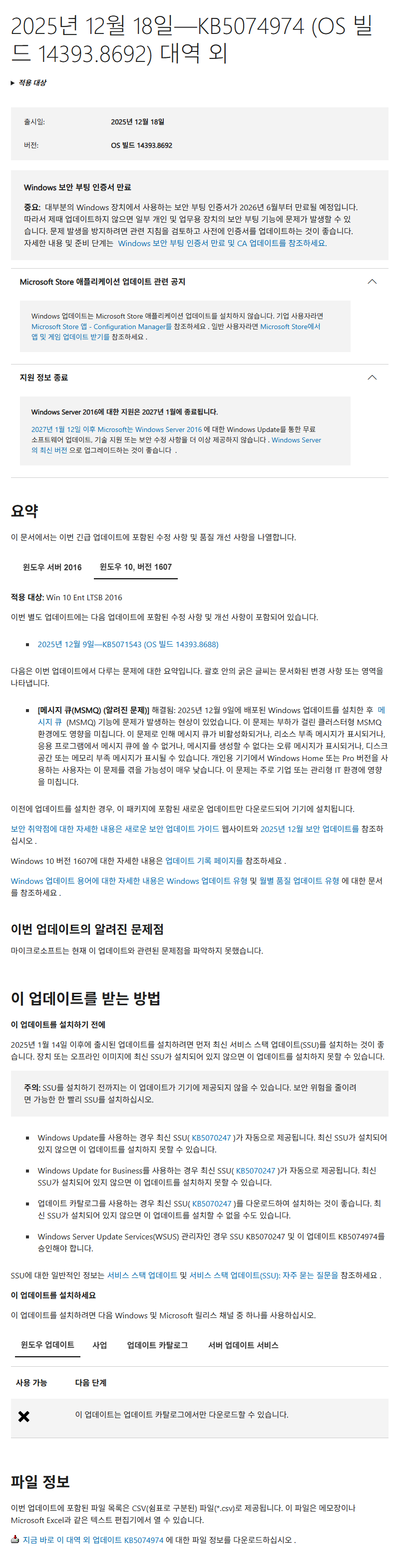 오늘 12월달 대역 외(OOB) 업데이트 가 배포되었습니다..