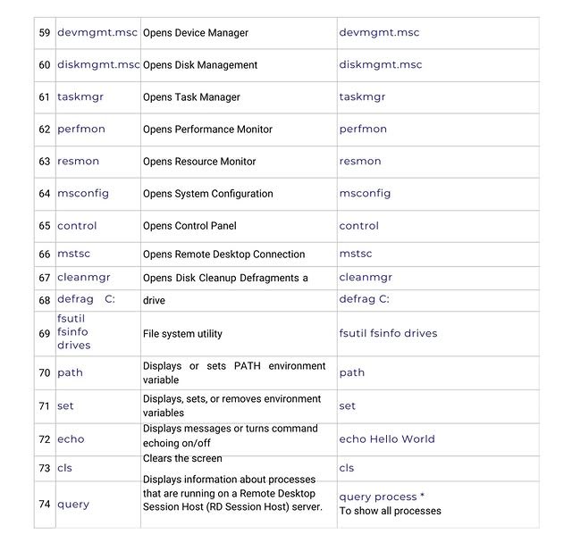 | 59 | diskmgmt.msc | 디스크 관리를 엽니다. | diskmgmt.msc |