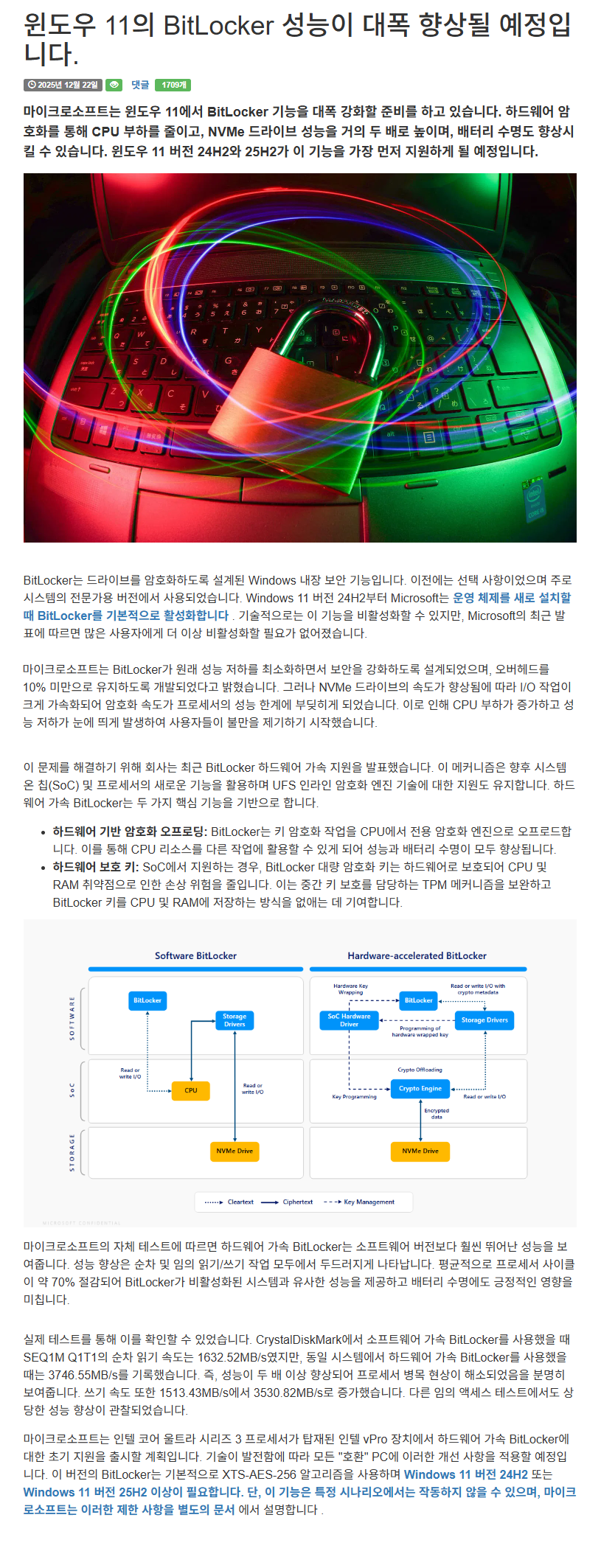 Windows 1 1의 BitLocker 기능은 성능이 대폭 향상될 예정