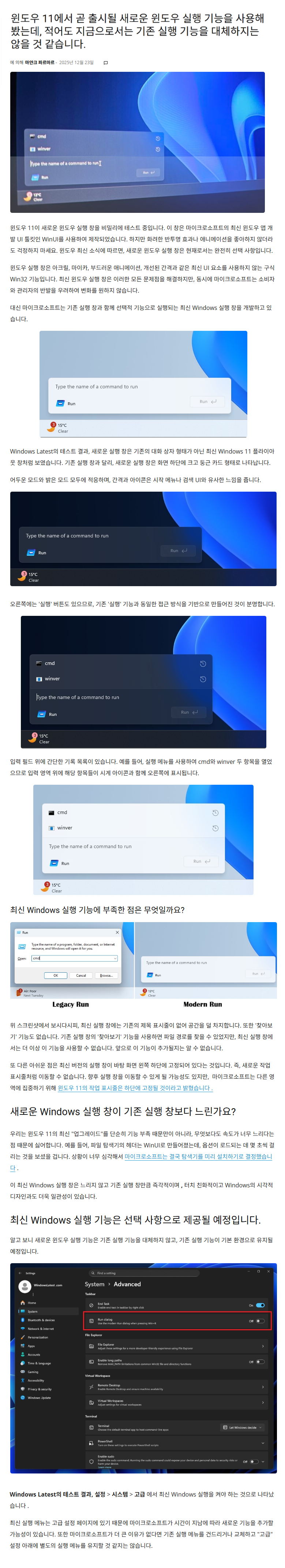 Windows 11에서 곧 출시될 새로운 [실행] 기능은 지금으로서는 기존 실행 기능을 대체하지는 않을 것 같습니다.