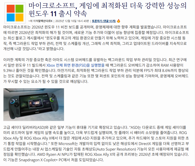 마이크로소프트, 게임에 최적화된 더욱 강력한 성능의 윈도우 11 출시 약속
