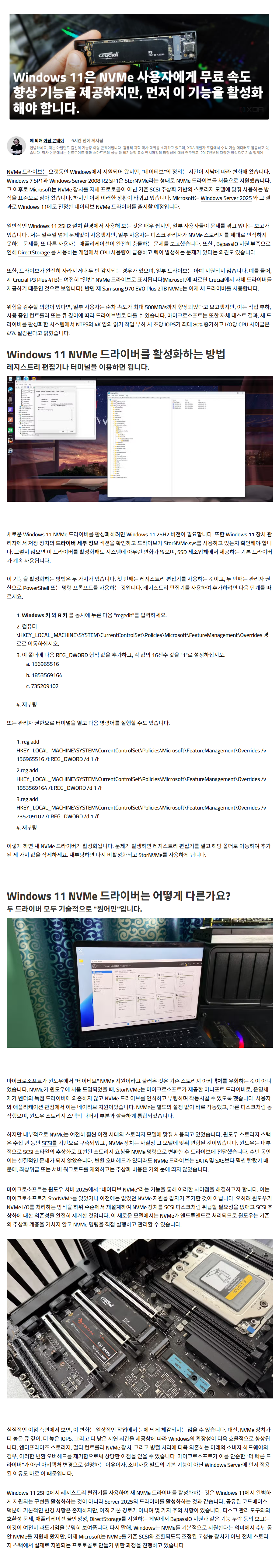 [참고] Windows 11 : 레지스트리 해킹으로 Nvme SSD 성능 대폭 향상시키는 방법