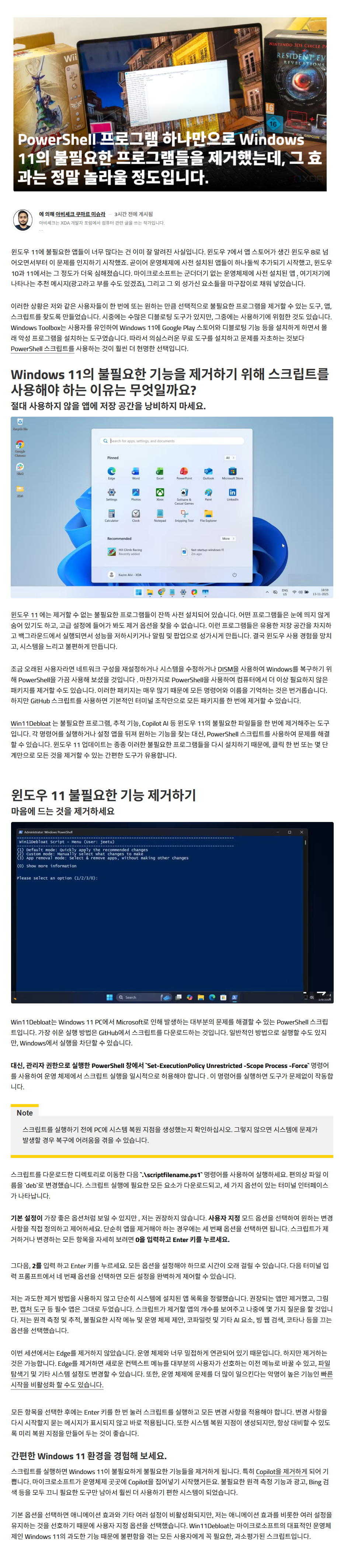 Win11Debloat.ps1 파일 실행하면 됩니다..ㅎ