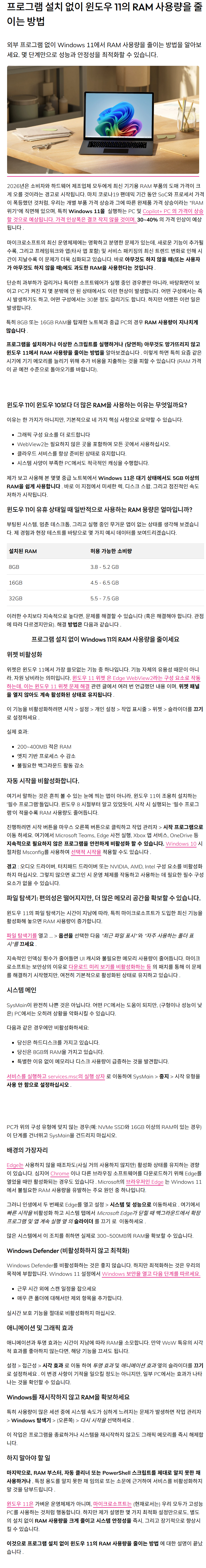 Windows 11의 RAM 사용량을 프로그램 설치 없이 줄이는 방법