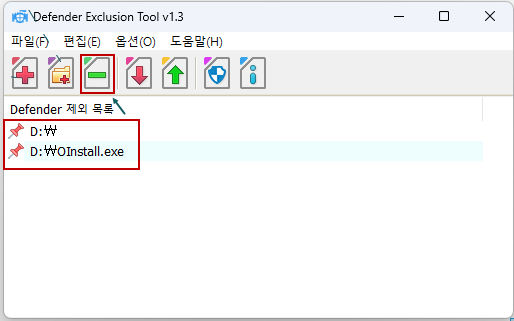 아래 프로그램을 실행시켜 탑재된 드라이브와 Oinstall.exe를 디펜더 예외에 등록해줍니다.