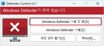 아래 툴로 디펜더를 임시 꺼놓습니다...
