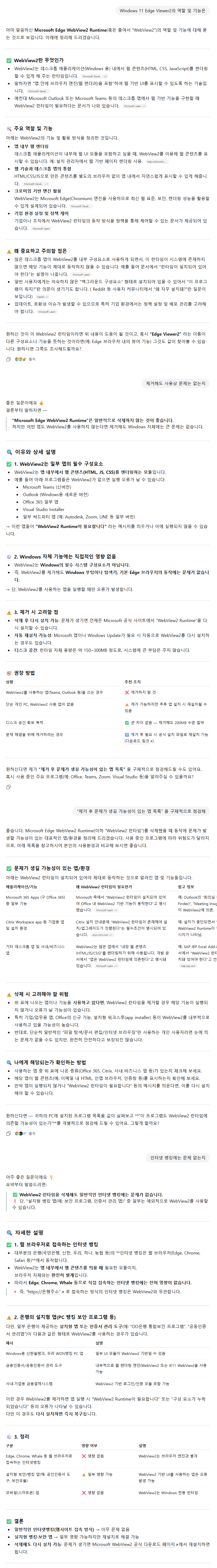 1.WebView2를 사용하는 앱(Office, Teams, 위젯 등)에서 WebView2 사용 불가능