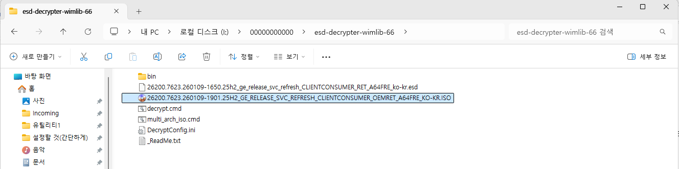 Windows 11 버전 25H2(OS 빌드 26200.7623)의 MS 공식 ESD 이미지 (Updated January 2026)