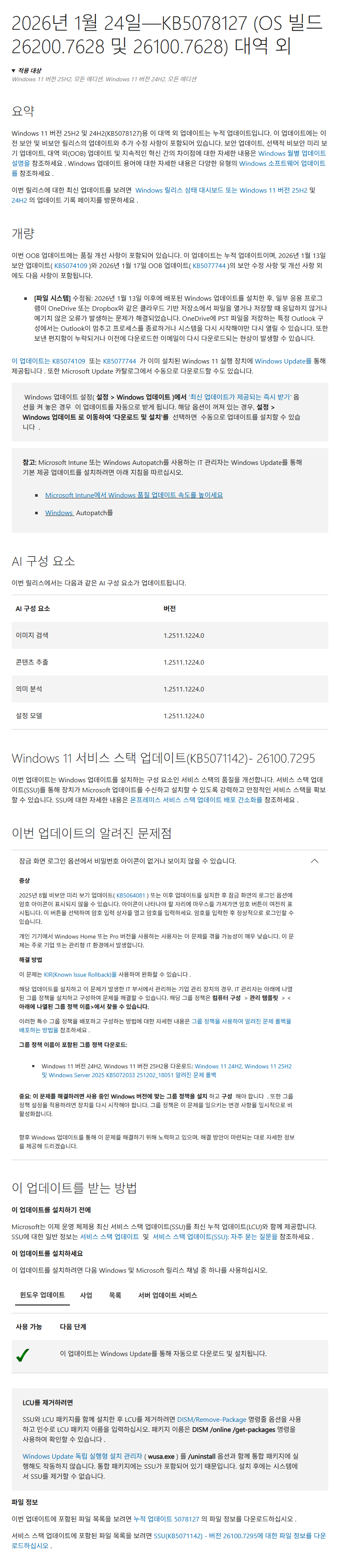 KB5078127 = 최신 누적 업데이트(26200.7628) (Last Cumulative update : LCU) (2026-01-24)