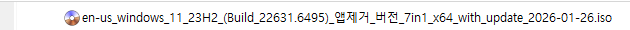 KB5078132 = 최신 누적 업데이트(22631.6495) (Last Cumulative update : LCU) (2026-01-24)
