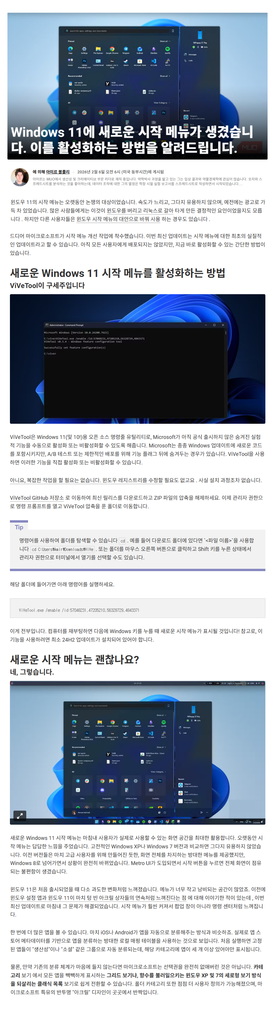 Windows 11 24H2/25H2에서 새로운 시작메뉴를 적용하는 방법입니다만....