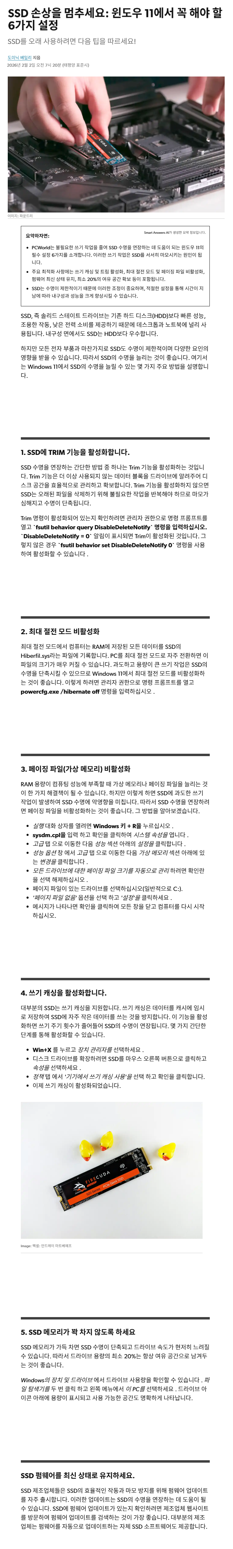 SSD 손상을 멈추세요 : 윈도우 11에서 꼭 해야 할 6가지 설정