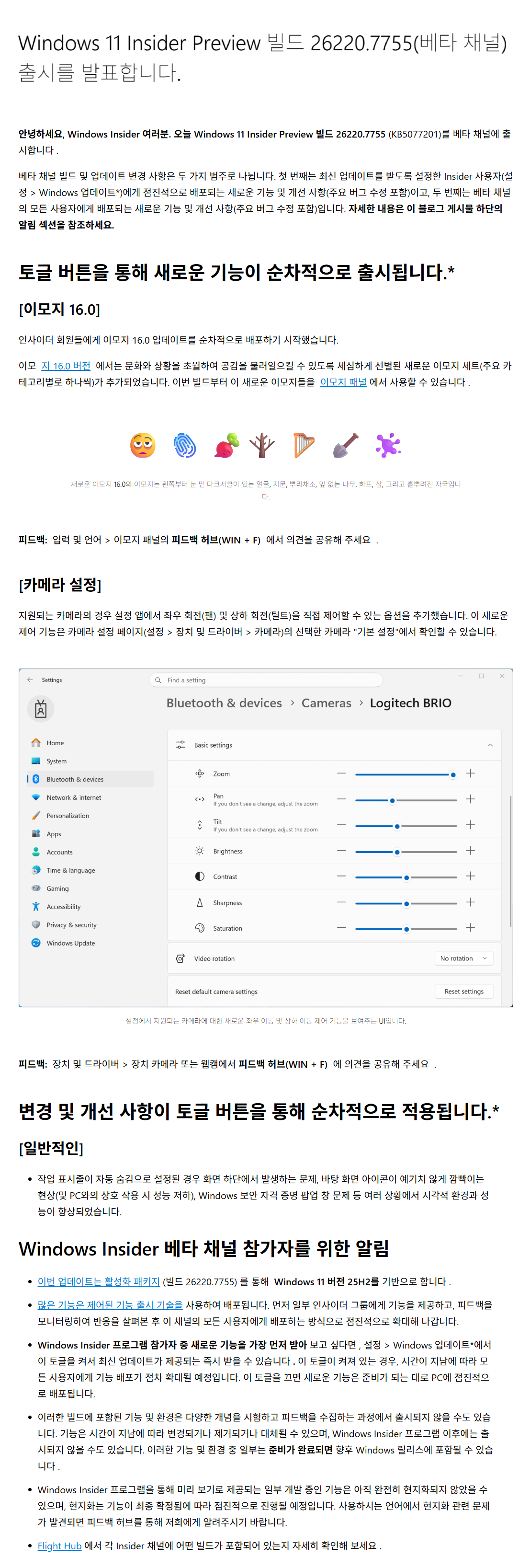 이 업데이트는 인사이드 참가자들에게 테스트 및 피드백 목적으로 배포되는 빌드입니다.