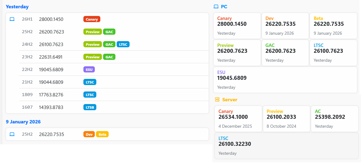 ○ 일반 사용자 채널 = Windows 11 25H2 : 빌드 26200.7623 (= 일반 사용자 빌드)