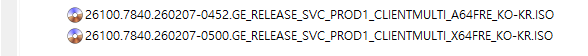 아래 파일은 UUP dump에서 배포하는 스크립트를 이용해서 MS에서 배포하는 파일(ESD, cab파일)로 만든 순수 ISO 파일입니다.
