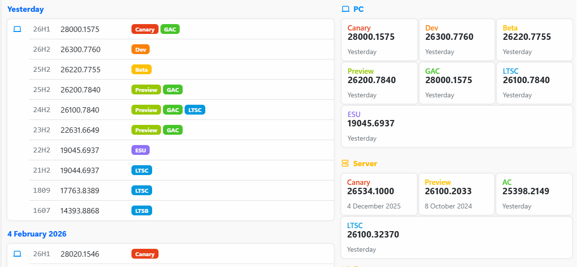 ○ 일반 사용자 채널 = Windows 11 26H1 : 빌드 28000.1575 (= 일반 사용자 빌드)