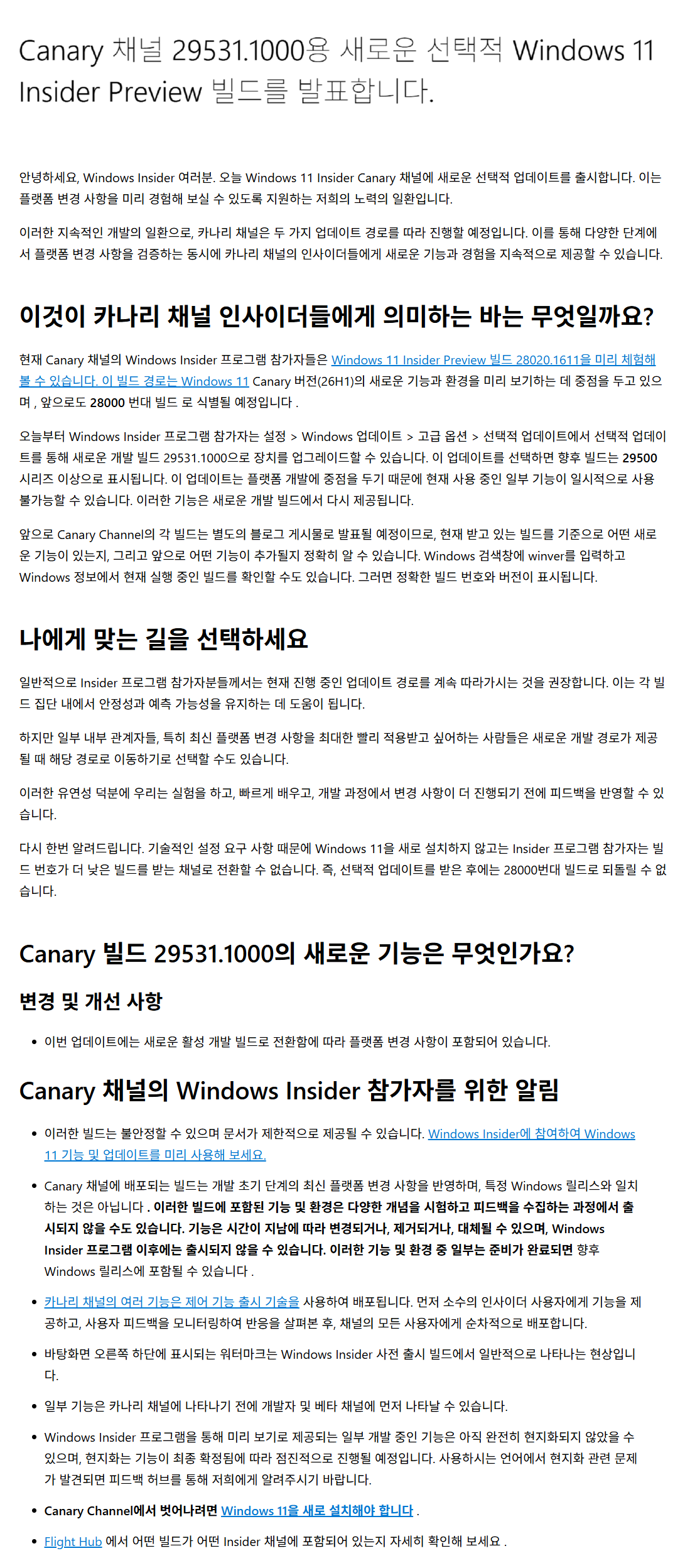 어젯밤 카나리 채널에 윈도우 11 버전 29531.1000을 출시했습니다.