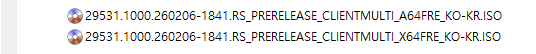 아래 파일은 UUP dump에서 배포하는 스크립트를 이용해서 MS에서 배포하는 파일(ESD, cab파일)로 만든 순수 ISO 파일입니다.