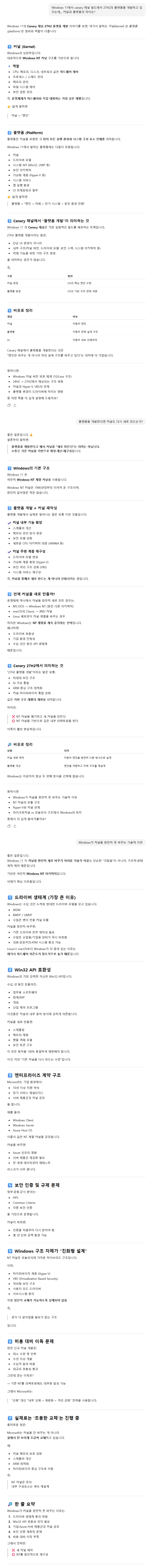 한 빌드는 Windows 11 버전 26H1 28020 (Bromine 커널)용이고, ---------------- 기능 개발에 중점