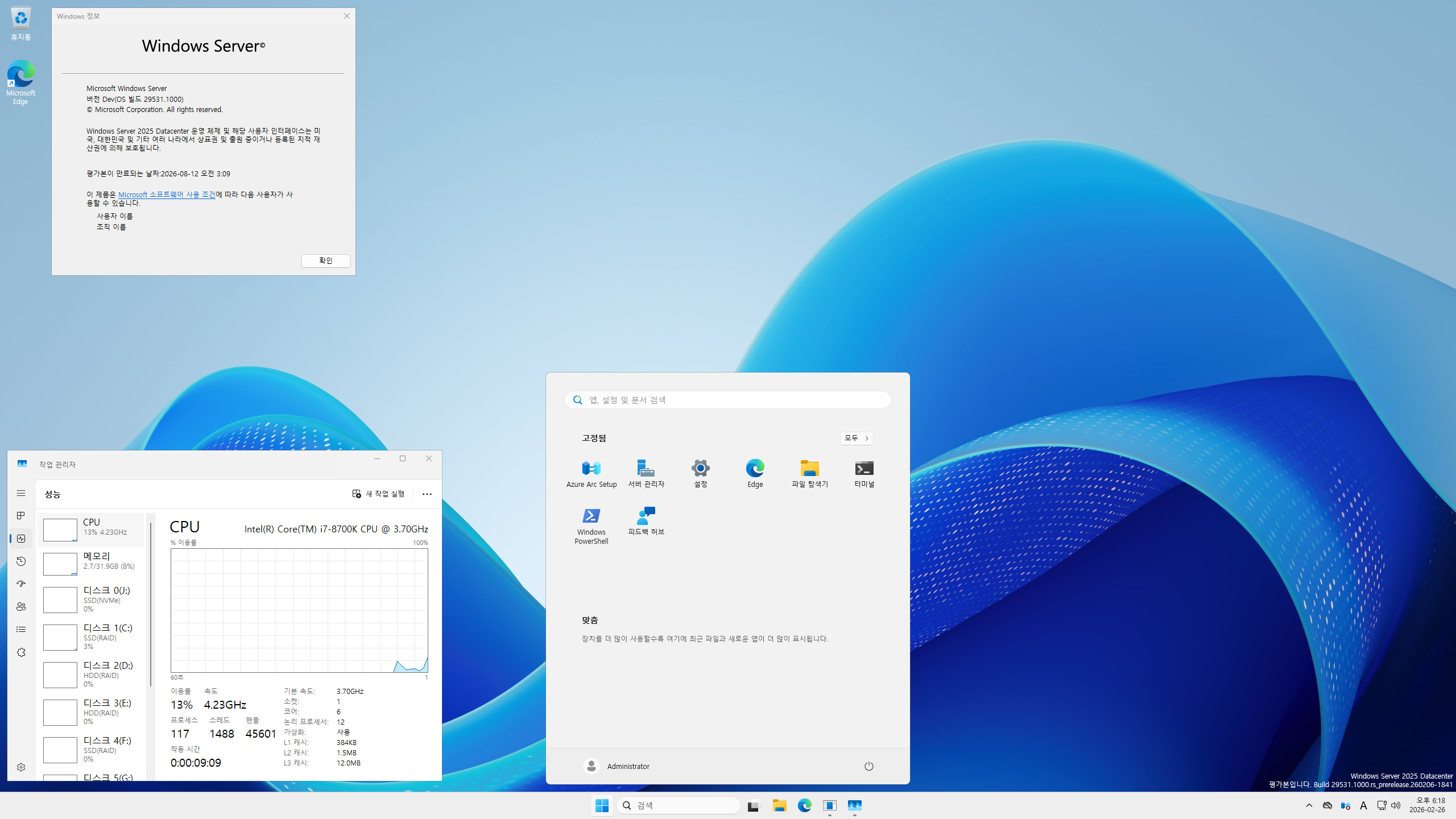 Windows Server vNext Insider Preview 빌드 29531 설치 완료