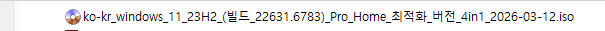 KB5078883 = 최신 누적 업데이트(22631.6783)) (Last Cumulative update : LCU) (2026-03-10)