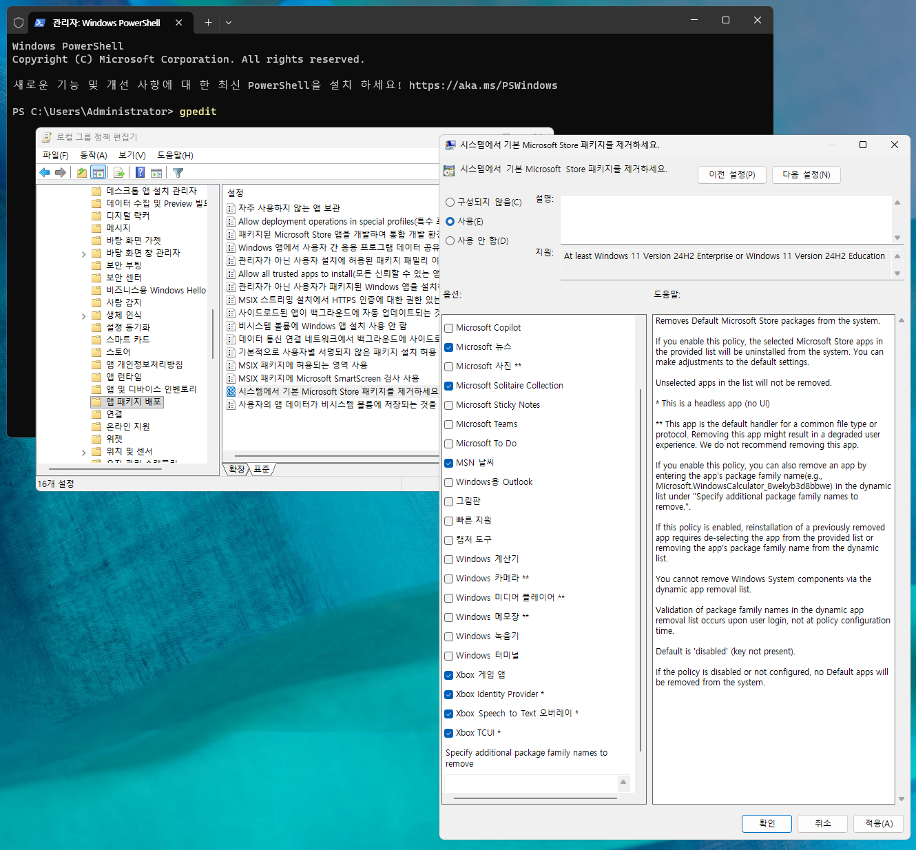 이번 빌드에서 gpedit에서 앱을 제거하는 옵션이 생겼습니다...