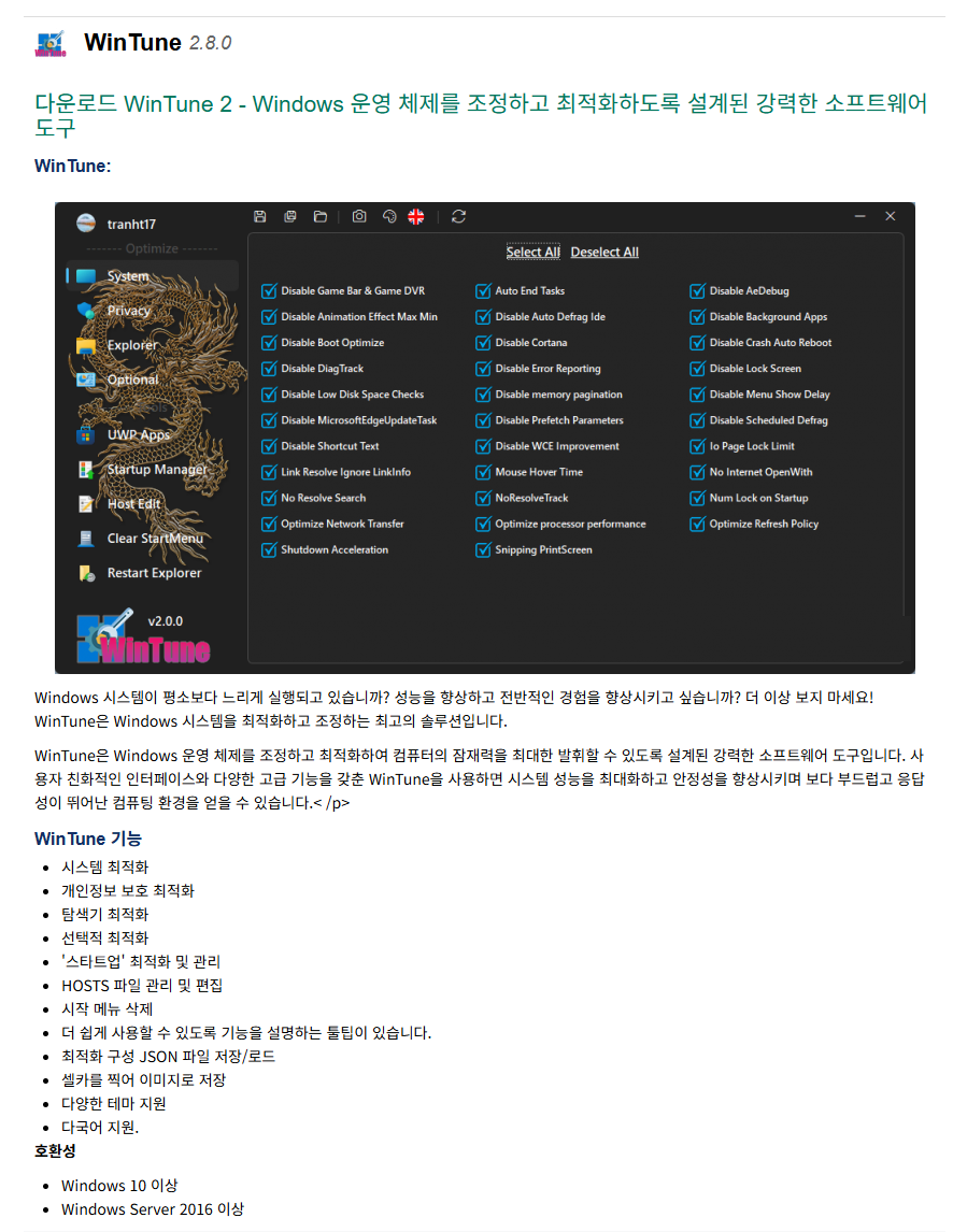Windows 11 최적화 프로그램(WinTune)