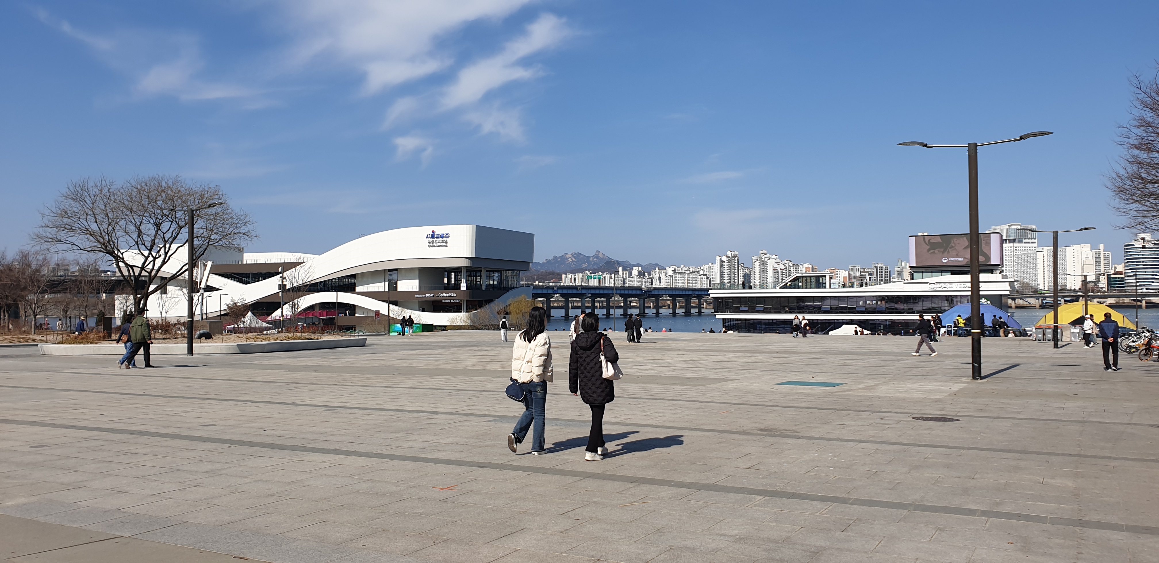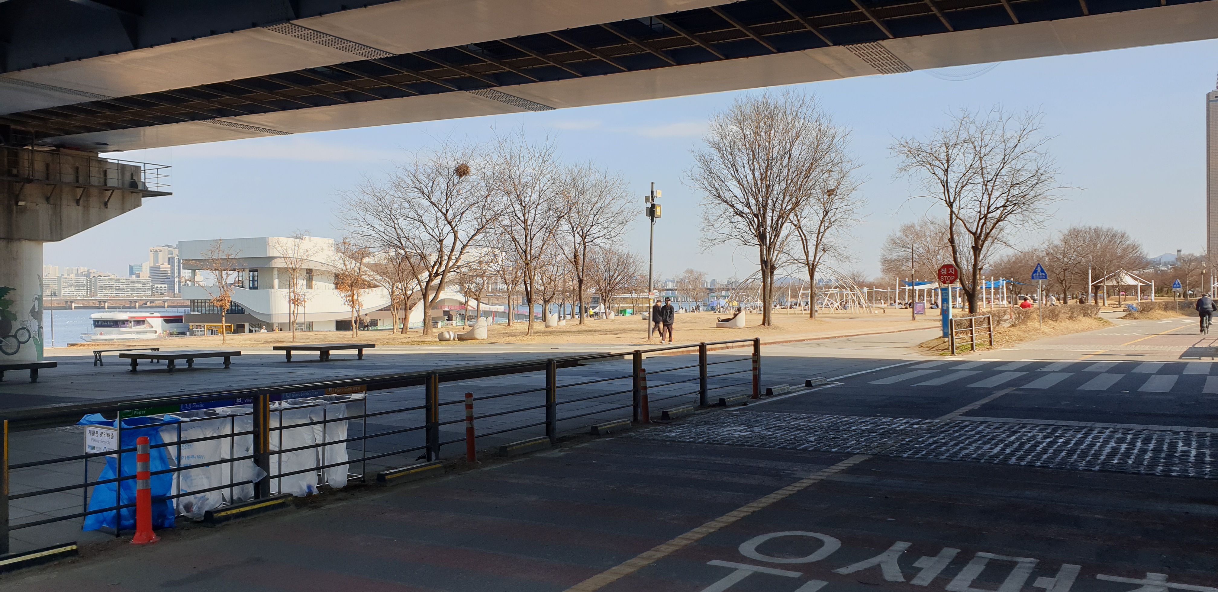 유람선이나 한강버스 선착장으로 쓸려고 지은 거 같습니다..