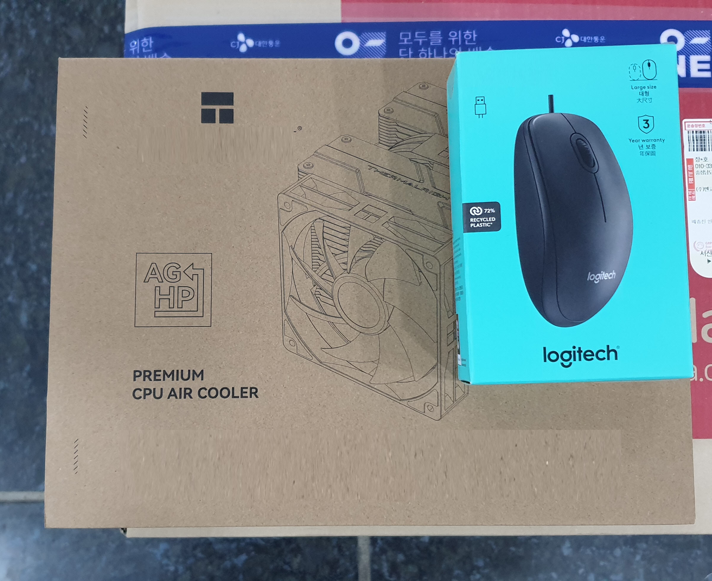 CPU 쿨러랑 마우스를 수령하고 나왔습니다...